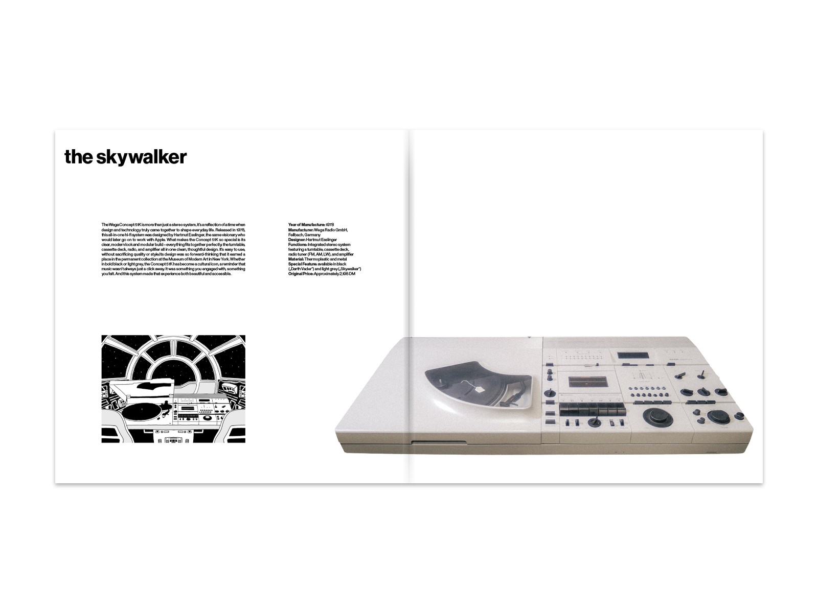 In our magazine “Turning Point”, we present various turntables from the collection, highlight their special features, and explore the gestural and acoustic dimensions of interacting with them: from the movement of the needle, to the perception of sound within a room, to the role the turntable plays in our personal lives. This is complemented by cinematic references, visual experiments, and personal reflections.